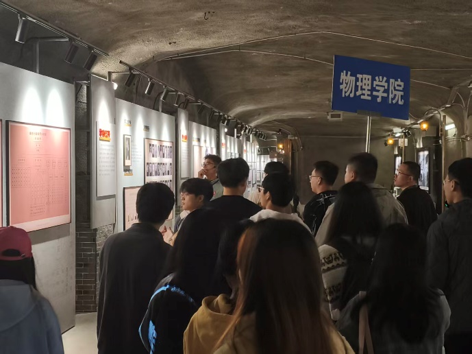 防空洞爱国主义教育基地。同学们缓步穿行于厚重的历史遗迹中,凝神倾听讲解员讲述抗战时期师生在空袭间隙坚持教学科研、守护文脉的感人壮举。先辈们于困厄中践行“研究学术、造就人才、佑启乡邦、振导社会”的办学宗旨,生动诠释了“复兴民族,誓作前锋”的崇高精神,使同学们深受震撼。